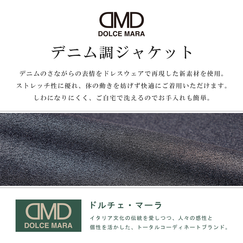 ジャケット メンズ DOLCE MARA ドルチェ・マーラ デニム調 テーラードジャケット ビジネス 2ツボタン ストレッチ 洗える 秋冬 春夏