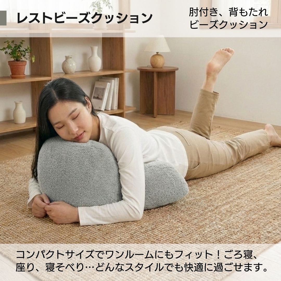 肘付きビーズクッション レストビーズ 背もたれクッション
