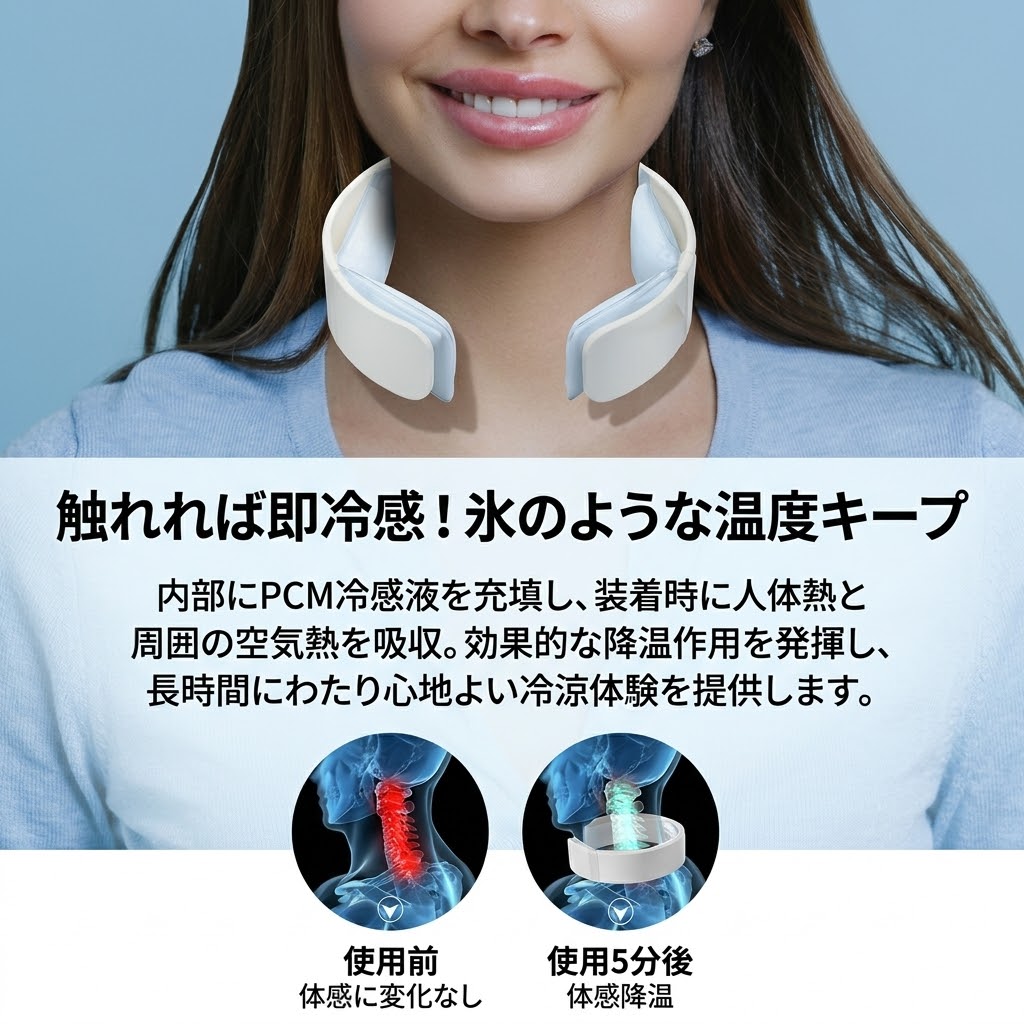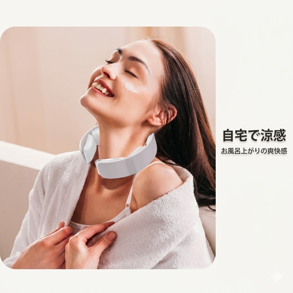 温熱機能:じんわりとした温熱で首周りの血行を促進し、凝り固まった筋肉をほぐします。