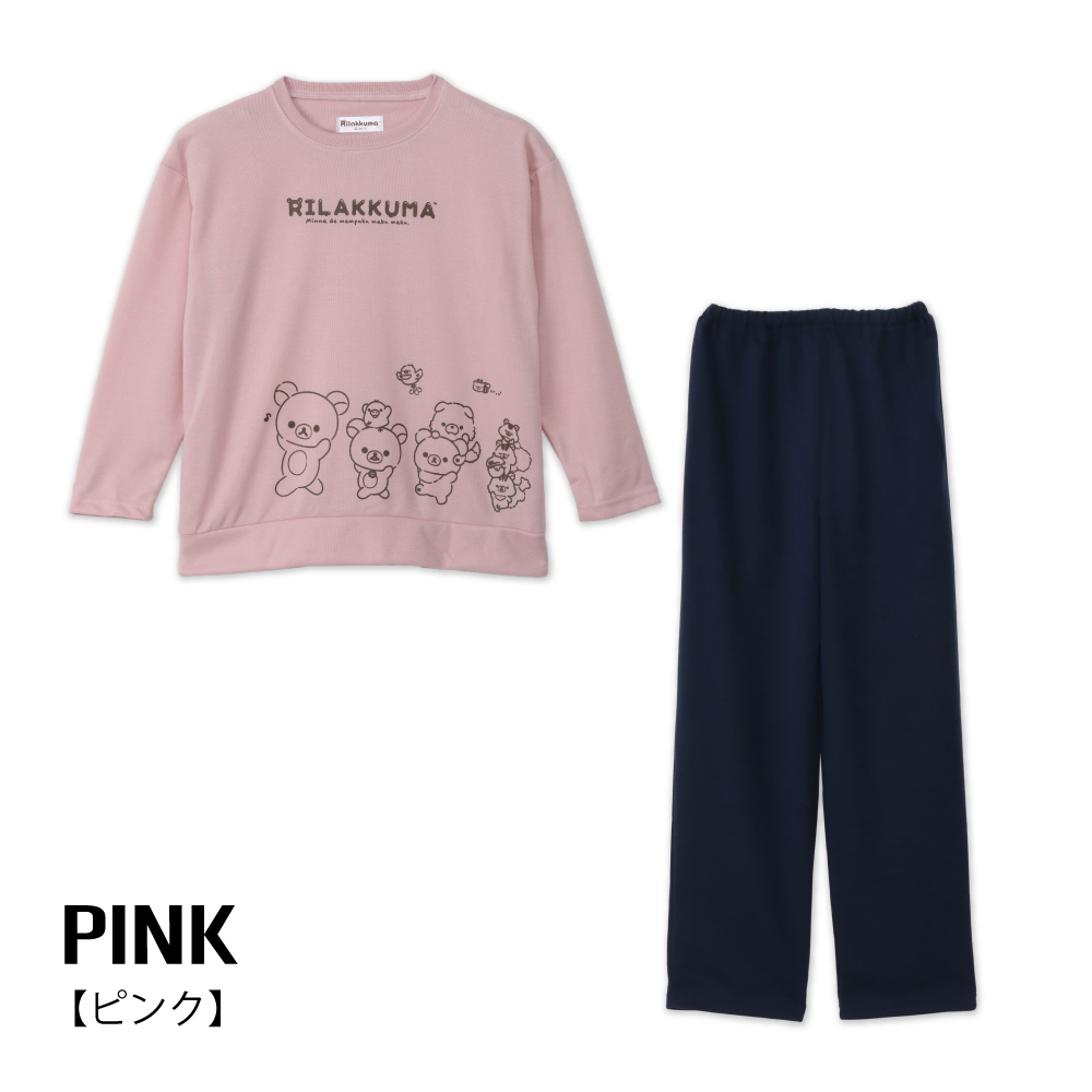 リラックマ キッズパジャマ ガールズ TCダンボール 長袖 春 秋 ピンク チャコール 130-160 76555kh
