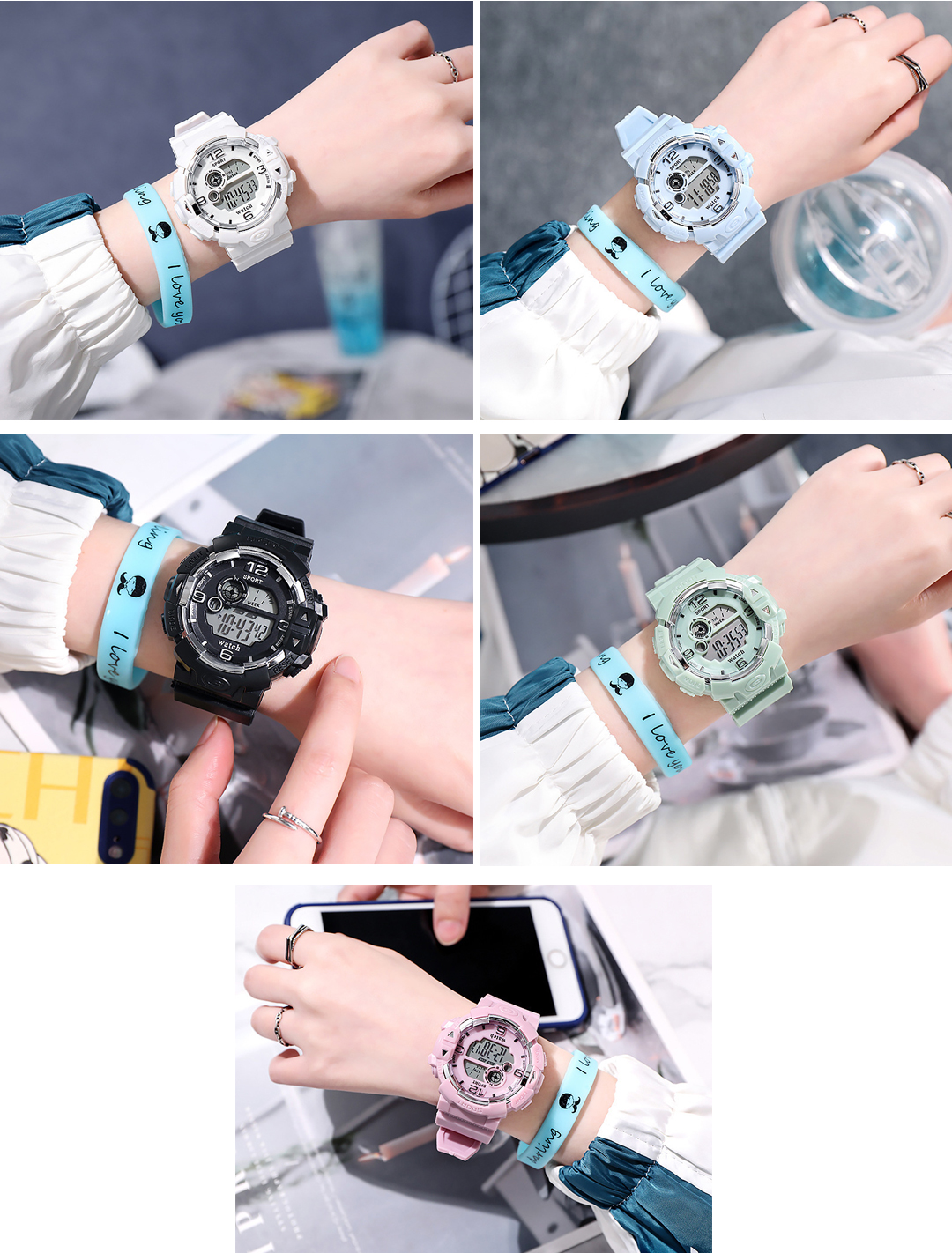 大画面 デジタル腕時計 レディース メンズ ビッグフェイス スポーツウォッチ LEDライト付き キッズ