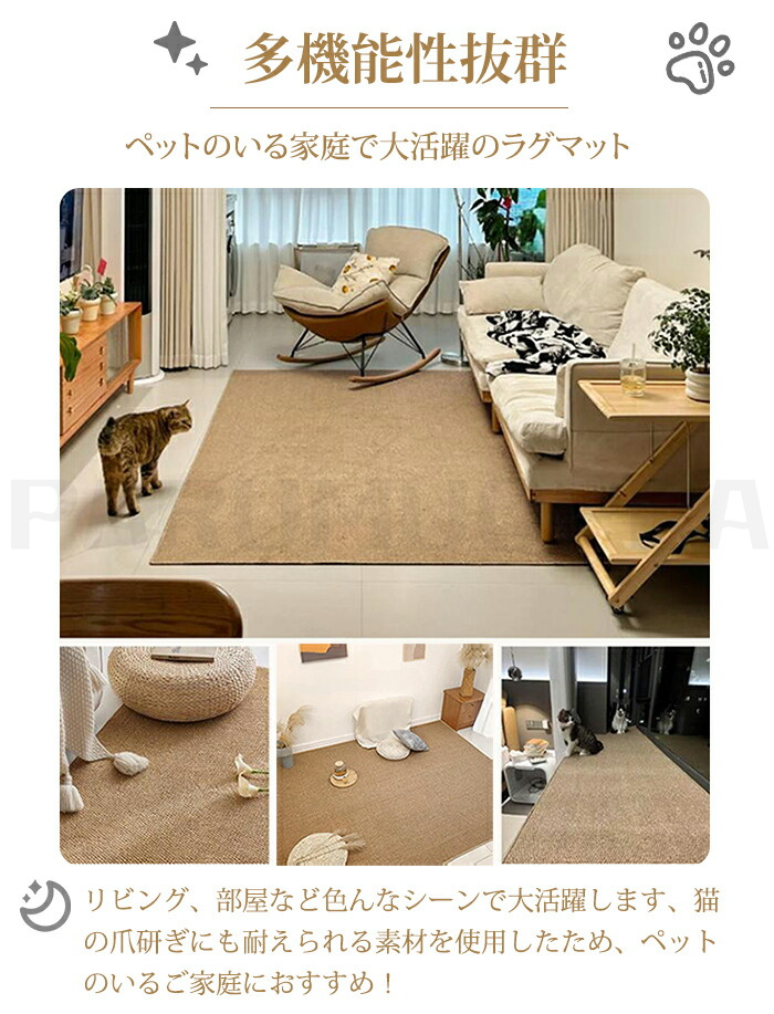 ペットマット 爪とぎ 滑らない 爪とぎマット 防滑 爪とぎ 爪研ぎ 猫用 猫 犬 ラグ 夏用 ラグマット 夏 厚手 ズレない 滑り止め 洗える サイザル麻 ペットラグ