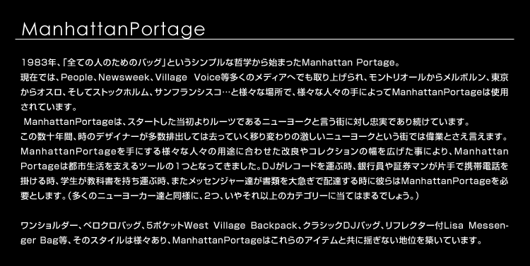 ◆ブランド名:ManhattanPortage/マンハッタンポーテージ