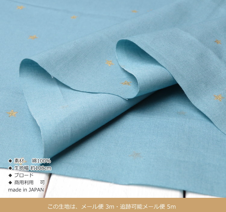 小さなラメの星が可愛いさらっとした綿100ブロード生地
