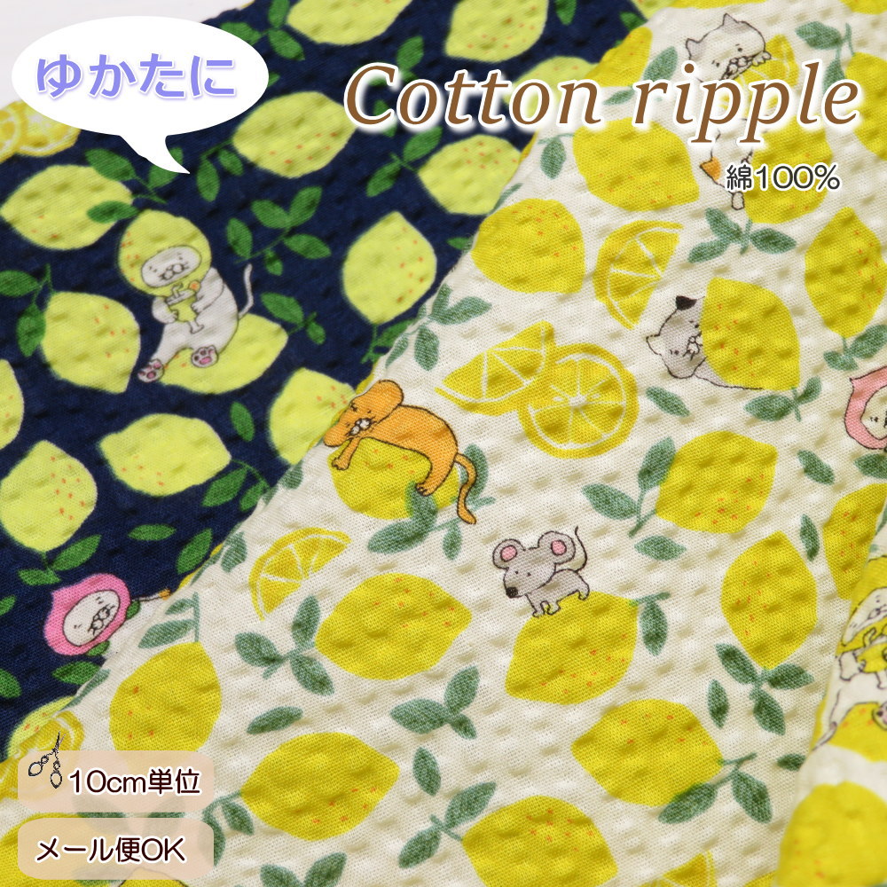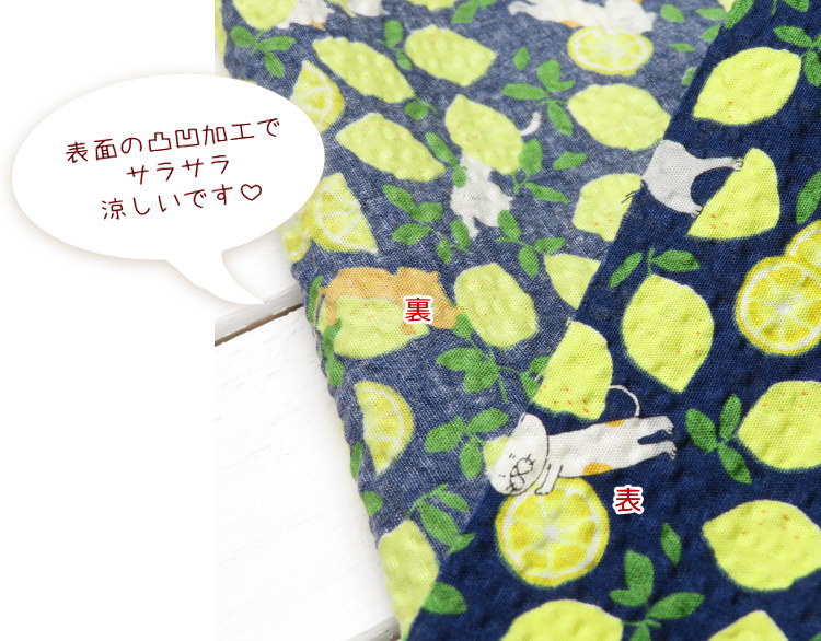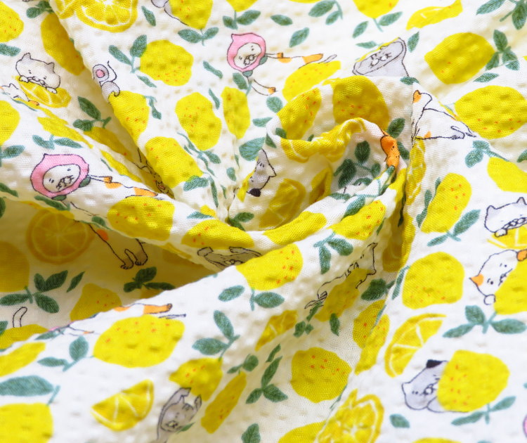猫柄プリントが可愛い♪ポコポコ感が涼しいリップル生地です。