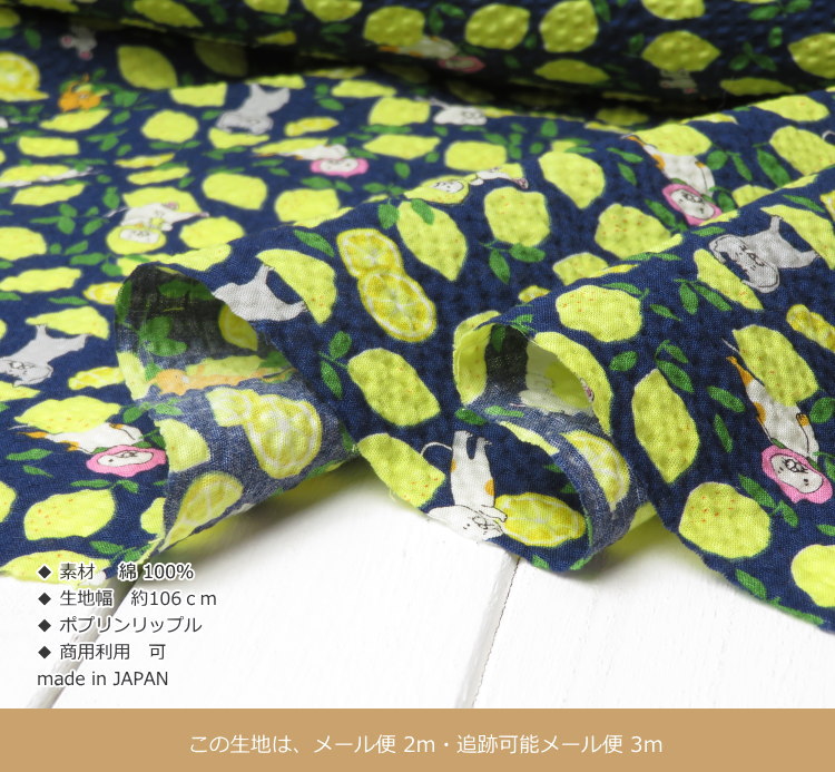 生地表面にポコポコとした凹凸を出すリップル加工を施した、夏にぴったりの日本製コットン生地です。