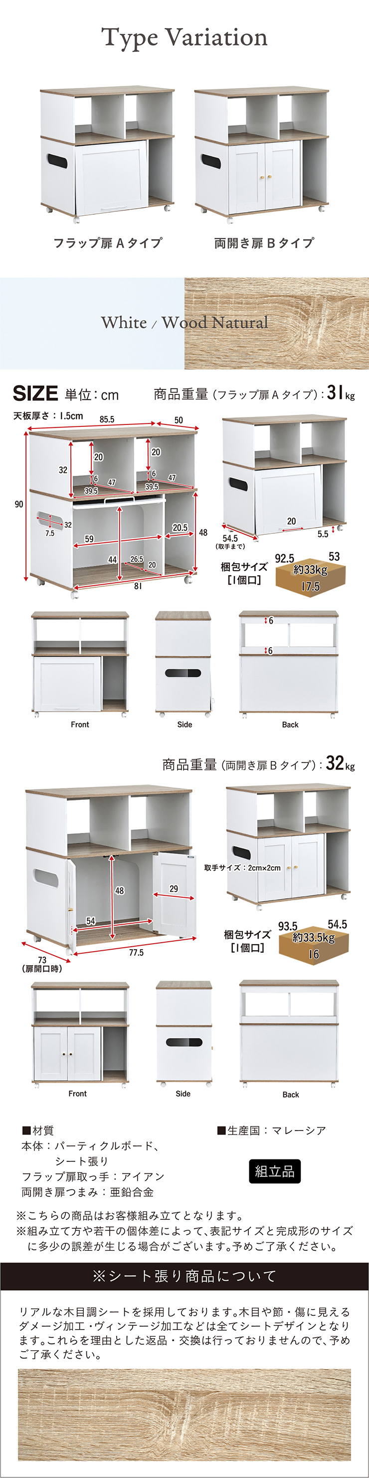 商品重量:31kg(Aタイプ)・32kg(Bタイプ)