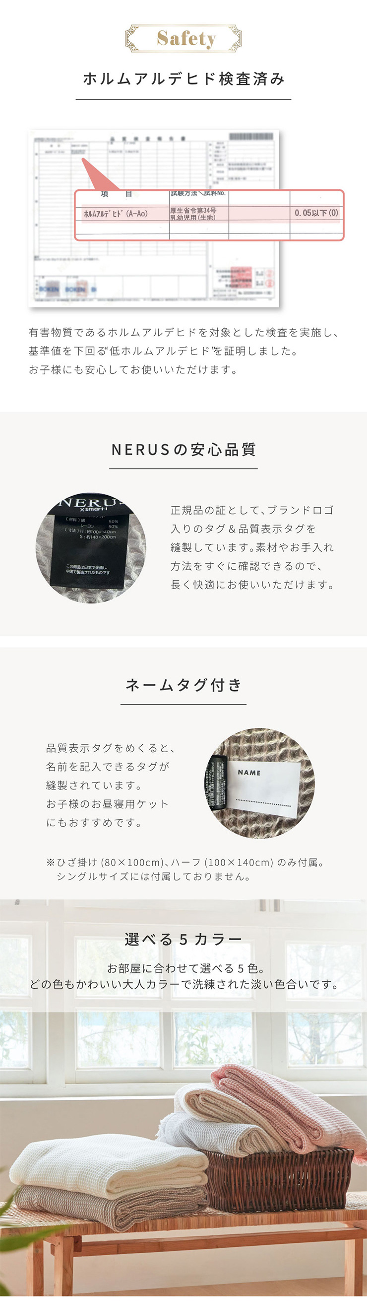 寝具 タオルケット ひざ掛け おしゃれ ガーゼケット 80x100cm 洗える ブランケット 布団 ワッフルケットMoa(モア) 5色対応 NERUS 正規品 ネルス