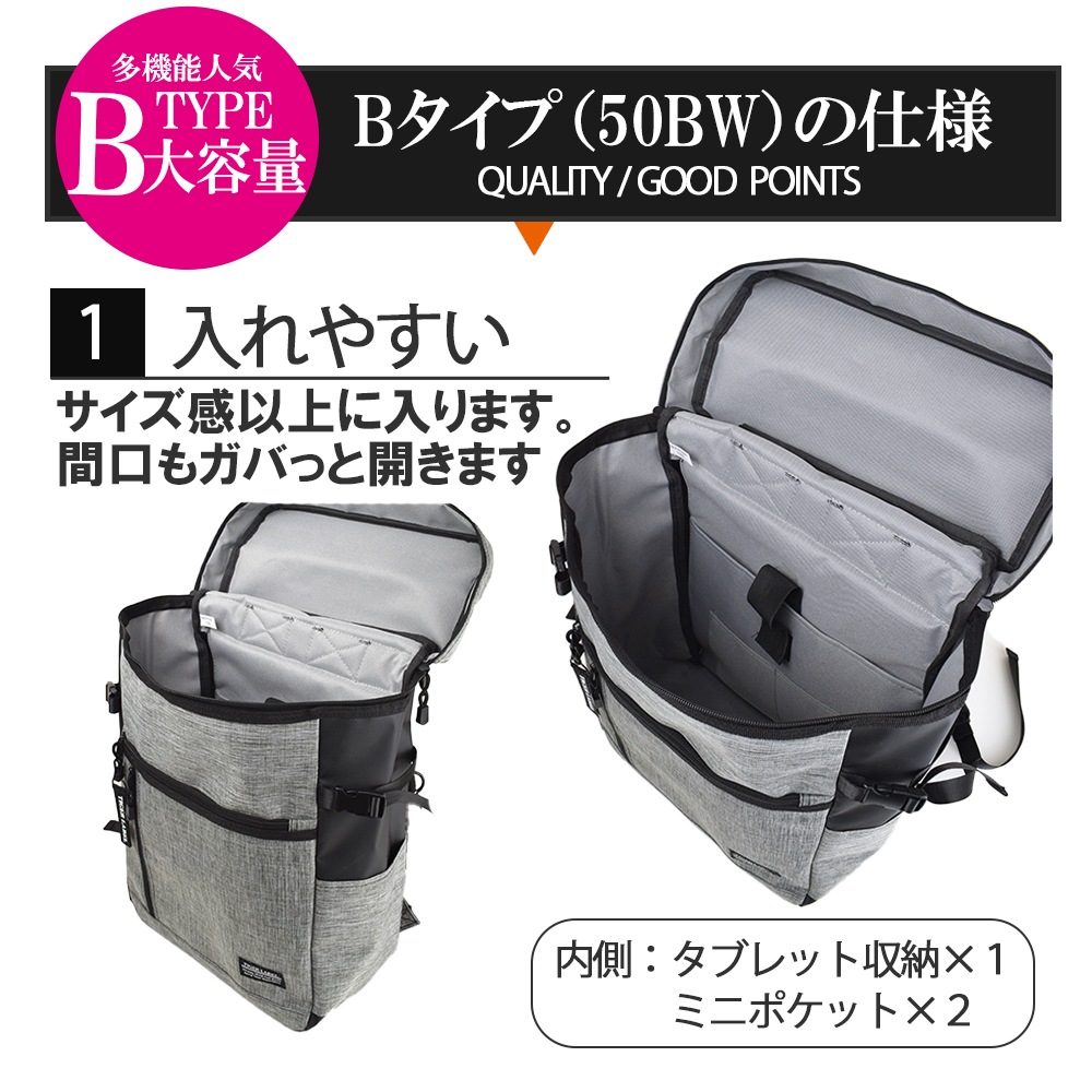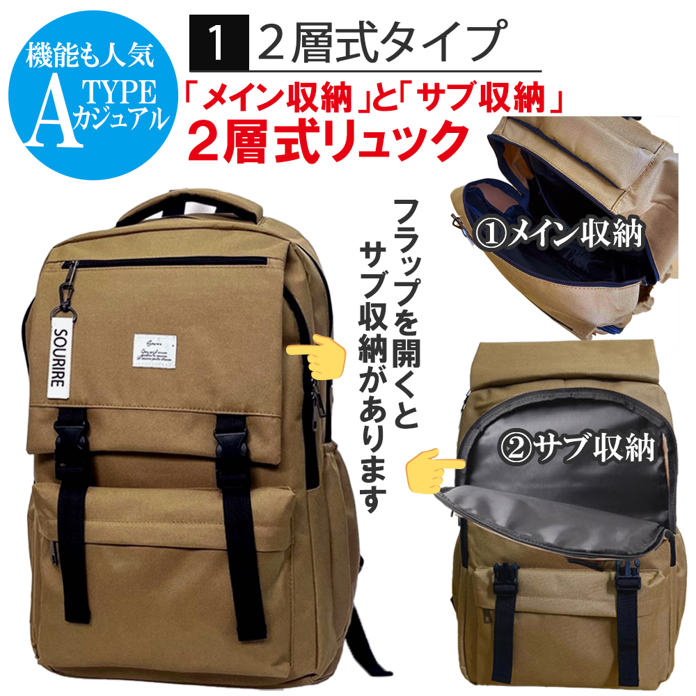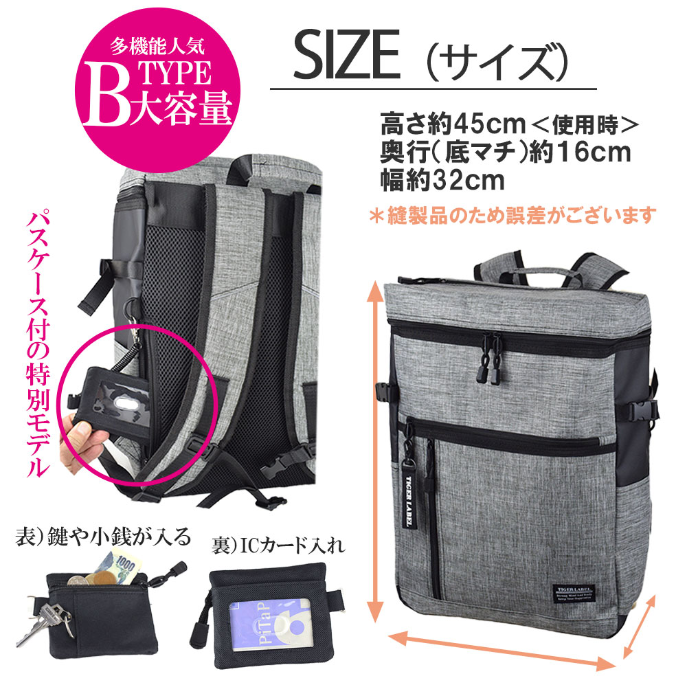 スクエアーで使いやすく 大容量のリュックです 多収納で便利なつくりが人気です プチポーチもついた特別モデル!