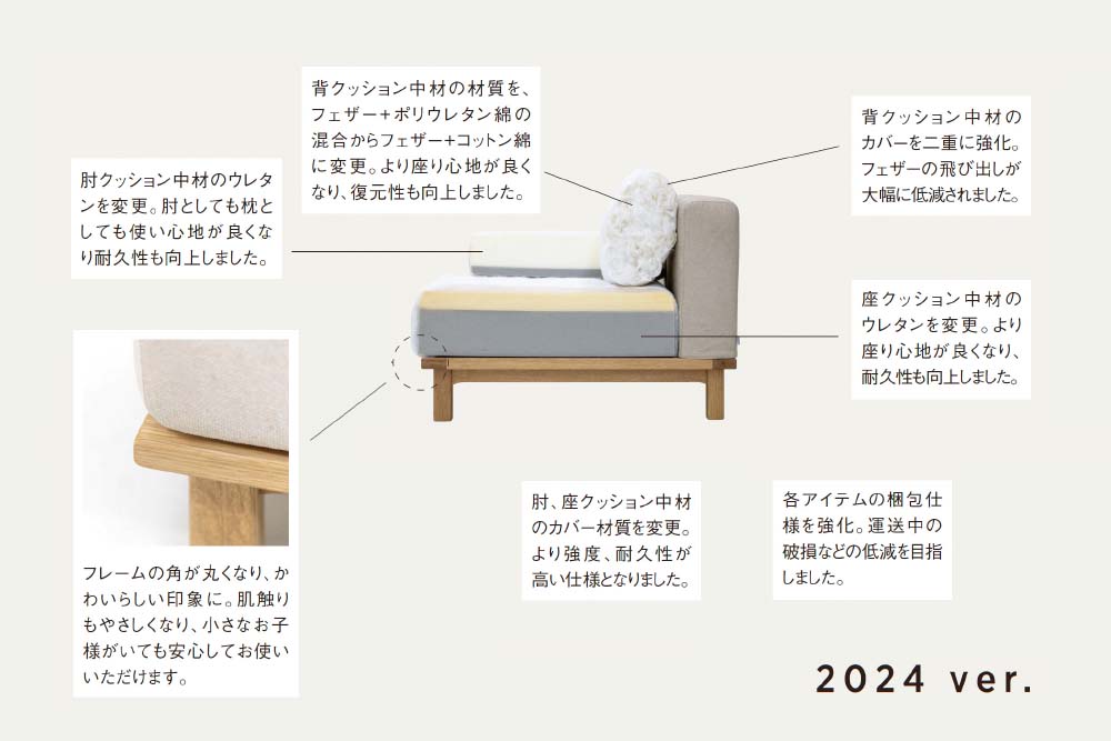 肘クッションのウレタンクッションの素材を変更し、耐久性を向上しました。