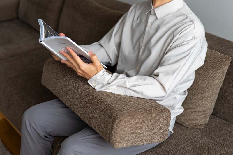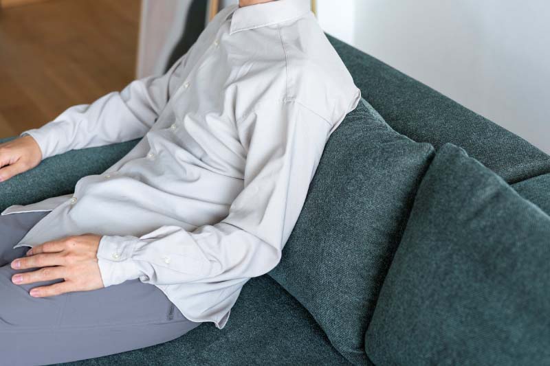 弾力のある硬めのクッションで、足を伸ばして座るカウチソファでも