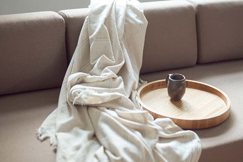 3つに分割された背は自由な位置に配置が可能で、まくらのようにも使用できます。