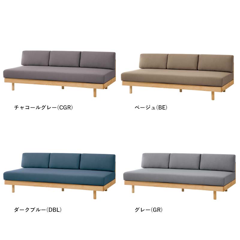 ポケットコイルマットレスを用いた座に、背を3つ配置したデイベッドソファ。