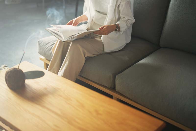 座は奥行きが十分にあり、寝転んだり座面の上であぐらをかいて座ったりするのにも適しています。