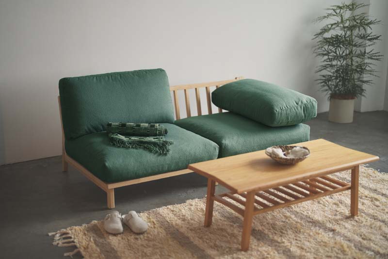 表情豊かでインテリアに馴染みやすいグレーベージュとグリーンの2色展開。