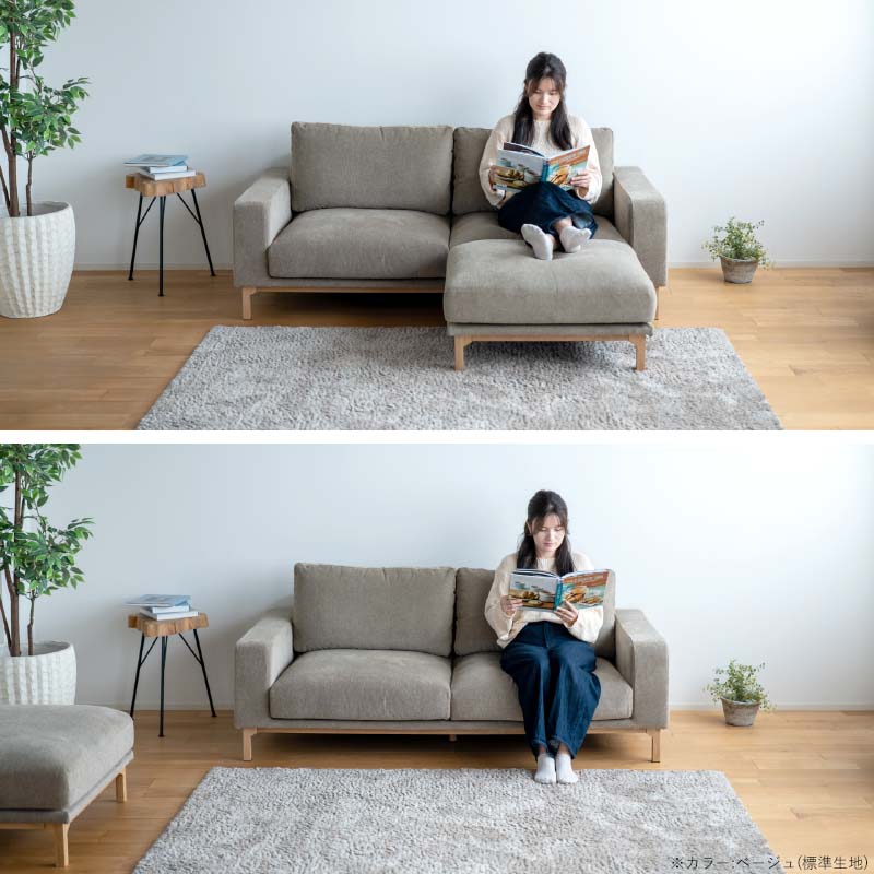 毎日座るものだからこそ、座り心地・耐久性・デザインすべてにこだわりました。シンプルなのに上質。柔らかすぎず硬すぎない“ずっと好きでいられる座り心地”。あなたのリビングに「家族が自然と集まる場所」をつくります。スツールを合わせれば、足をしっかり伸ばして休める“カウチモード”に早変わり。腰・脚の負担が減り、映画鑑賞・読書・お昼寝がさらに快適に。※こちらの商品ページはソファ+スツールのセットです。※こちらのソファのカバーは、ペットの爪が引っ掛かりにくい超微細スウェード生地が使われています。