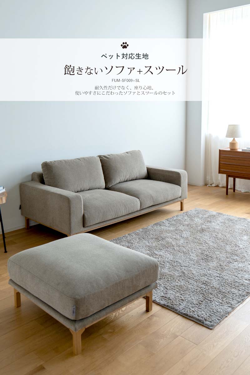 ペット対応生地 Fumi 飽きないソファ + スツール ソファとスツールのセット ベージュ/グレー/ネイビー 二人掛け 2シーター オットマン付き 北欧 ナチュラル カバーリング 洗える ペット 犬 猫 長く使える FUM-SF009-PET 北欧テイスト おしゃれ かわいい シンプル フミ ソファー 爪が引っ掛からない