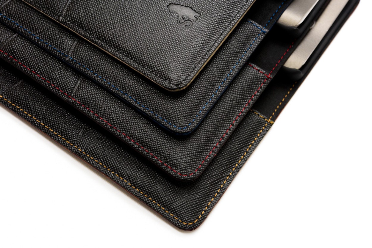 カードホルダ部分のデザインや内側のステッチの色を変えるなどおしゃれに丁寧に作られています。