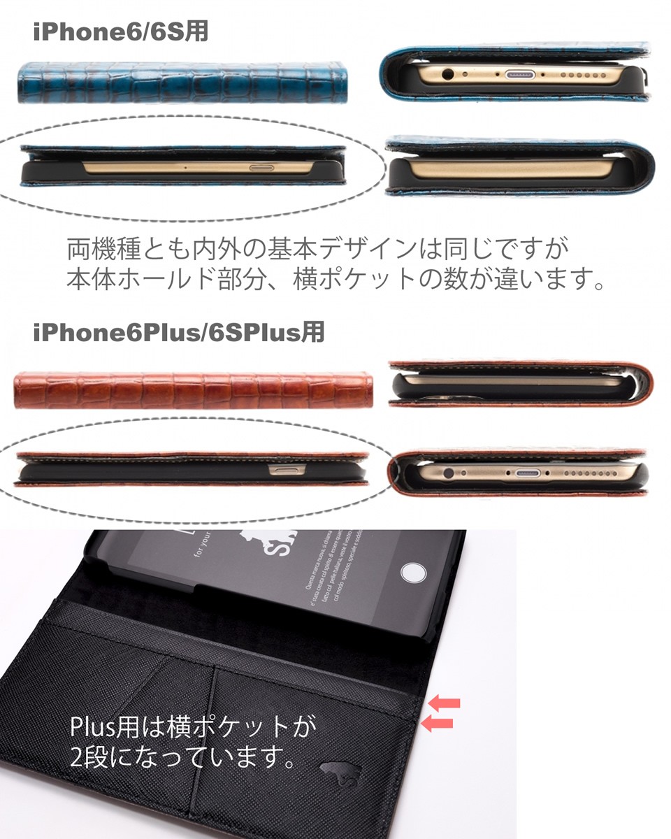 またiPhone6Plus/6sPlusは横ポケットが2段になります。