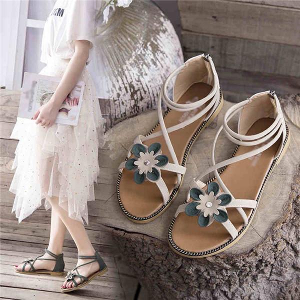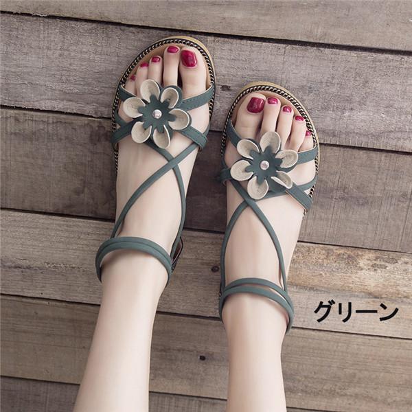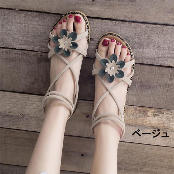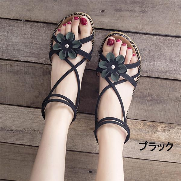 サンダル 花飾り サマーサンダル レディース 美脚サンダル 大きいサイズ ぺたんこ かわいい トレンド ローヒール おしゃれ 軽い 可愛い ビーチ 歩きやすい 軽量 di011zbzbzb
