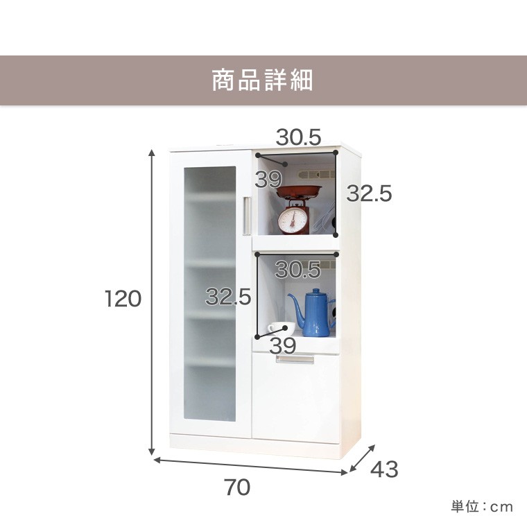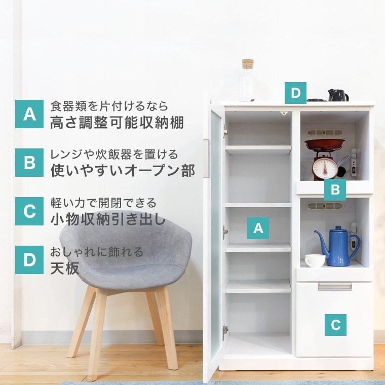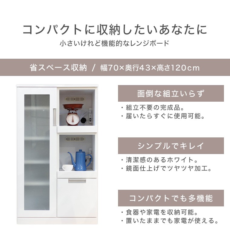 レンジ台 食器棚 収納 幅70cm 完成品 白 ホワイト Nアクア70レンジ