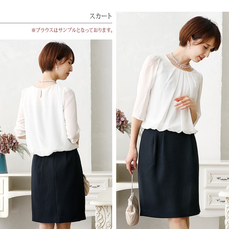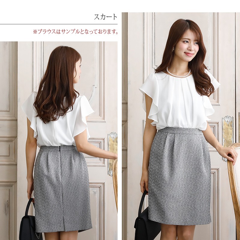 タイトスカートですが、腰部分にタックが入っておりすぼまりすぎないデザインに。