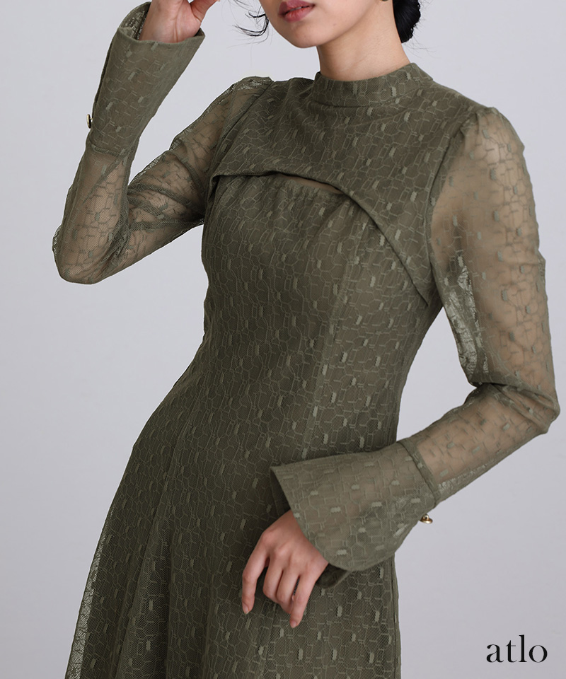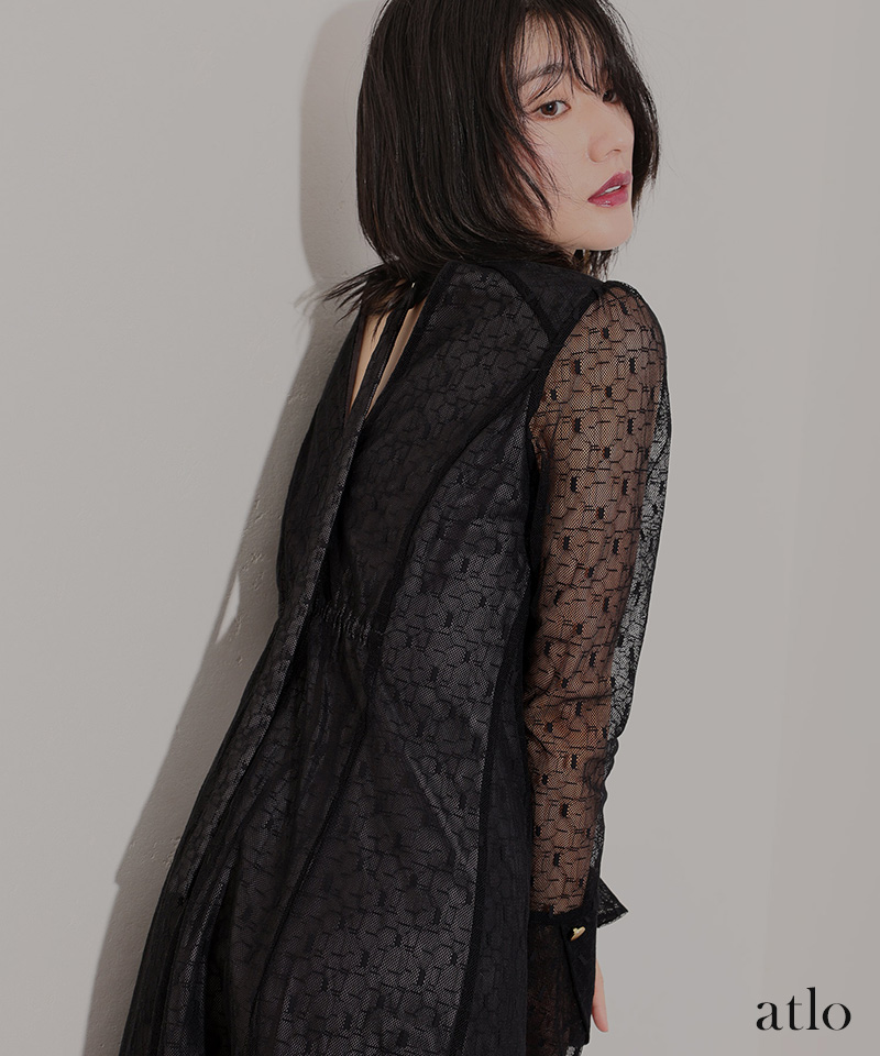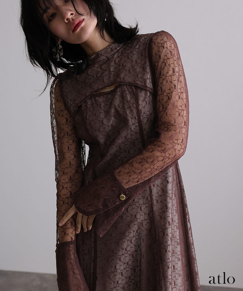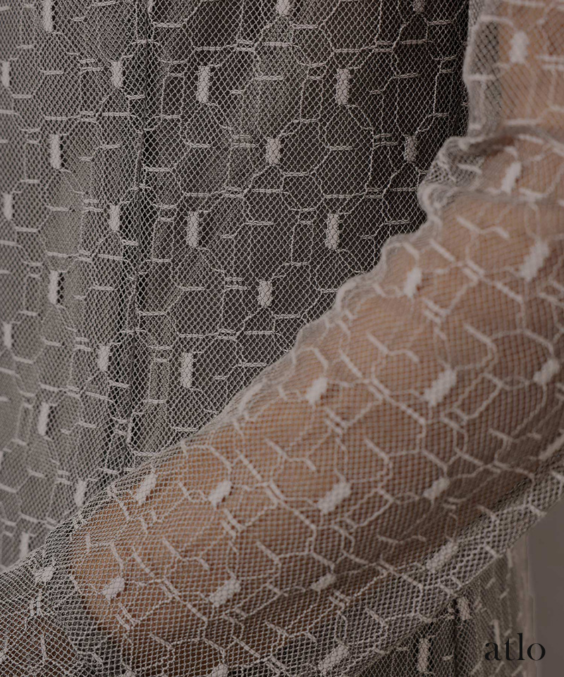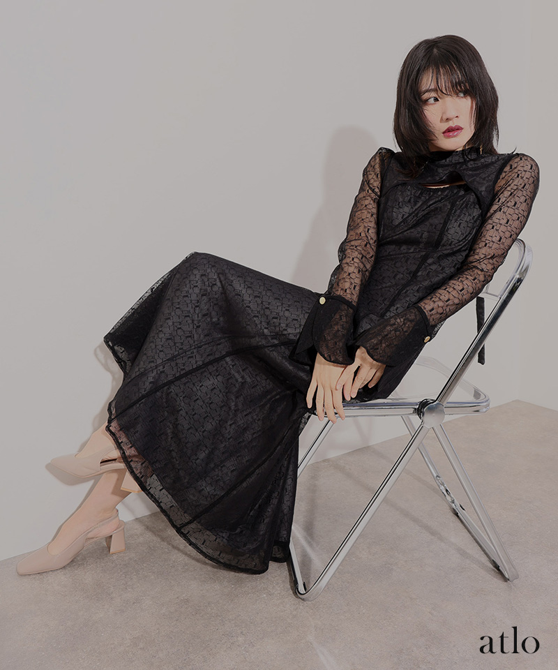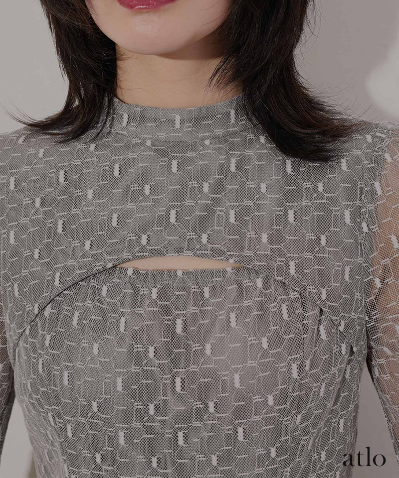 胸元の肌見せと袖のレースがほどよい抜け感とこなれ感を演出。