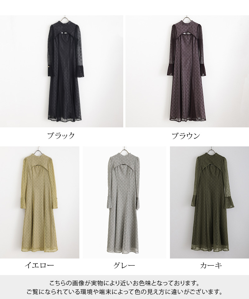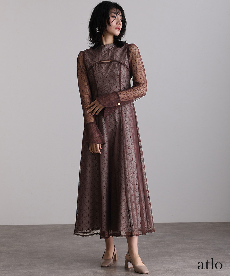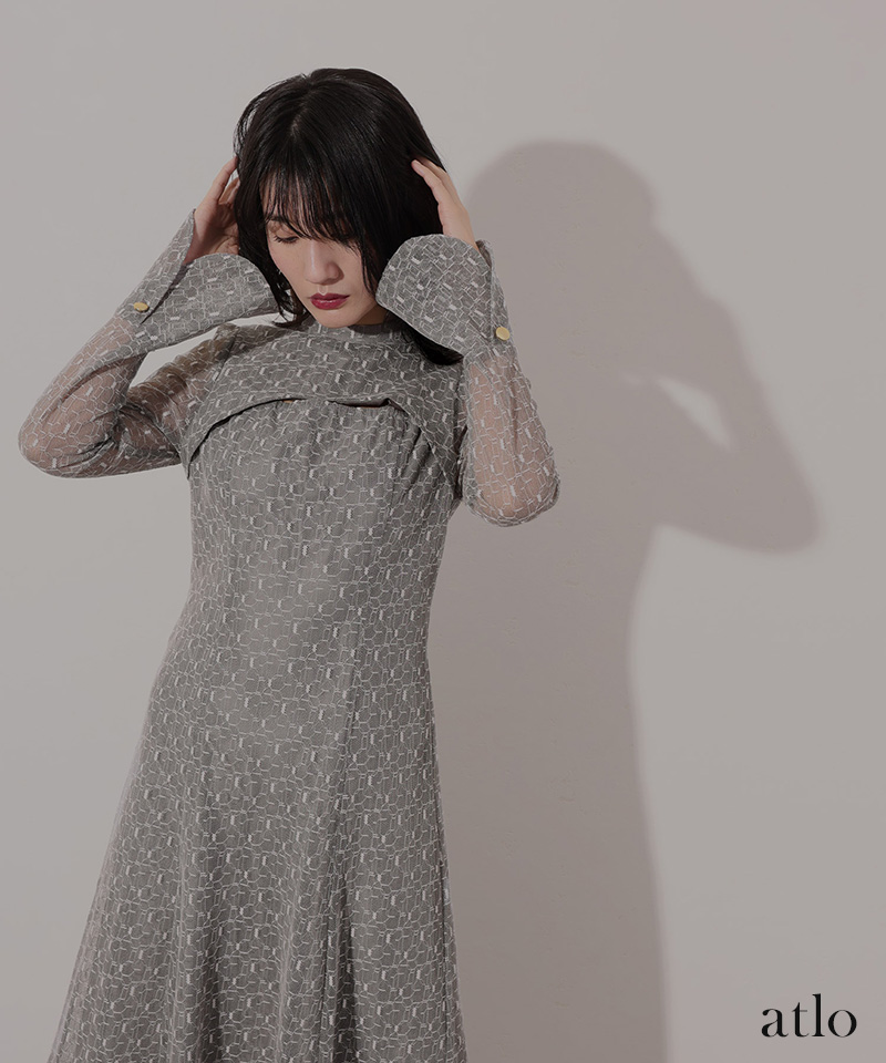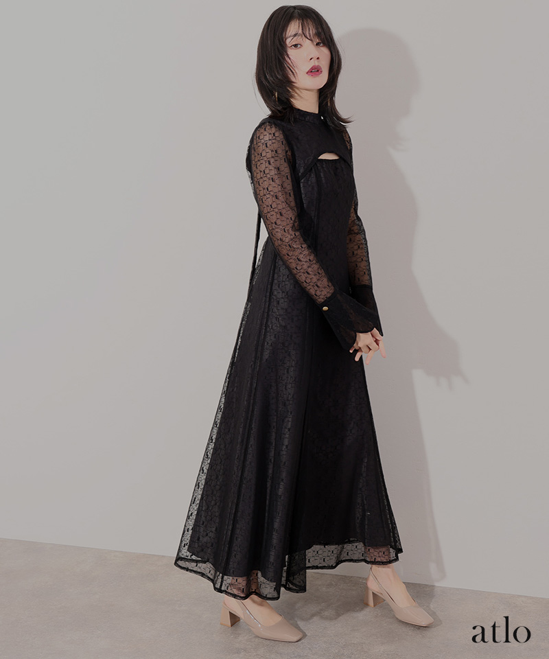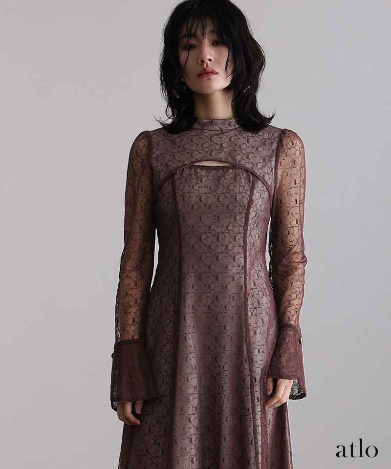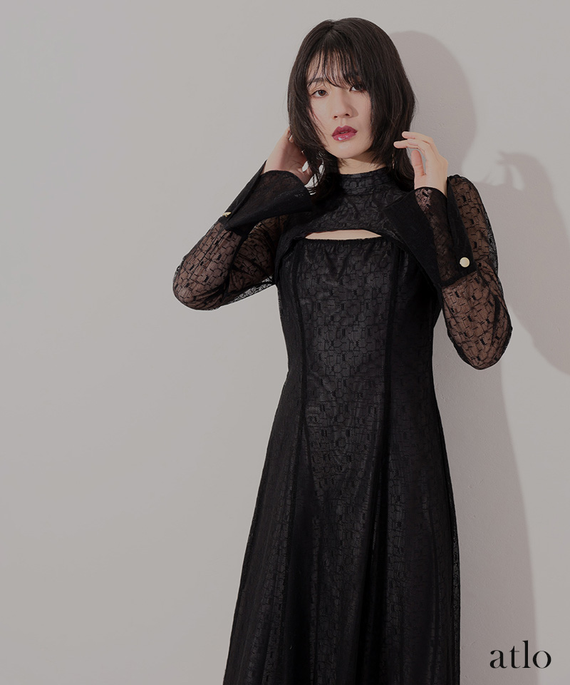 胸元の肌見せと袖のレースがほどよい抜け感とこなれ感を演出。