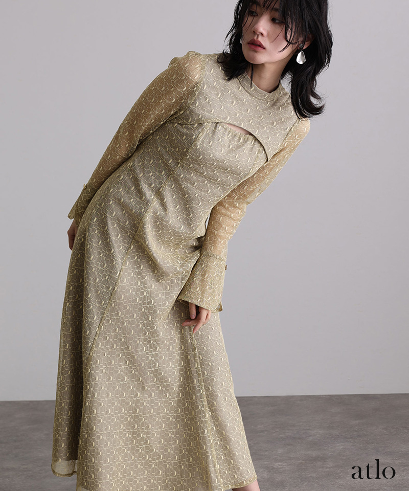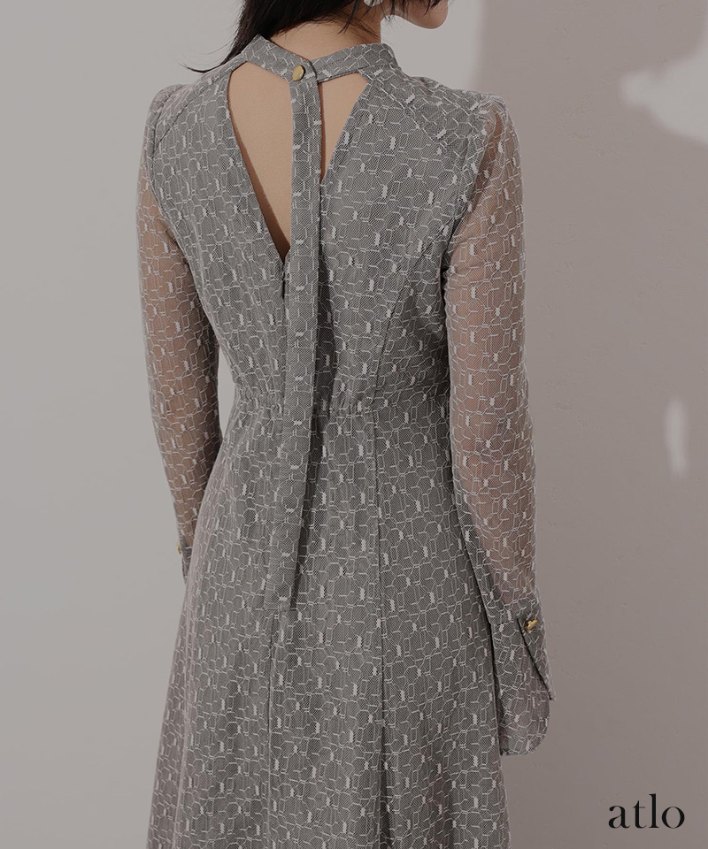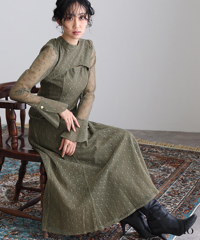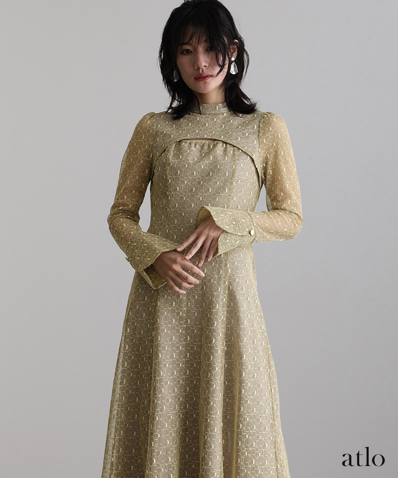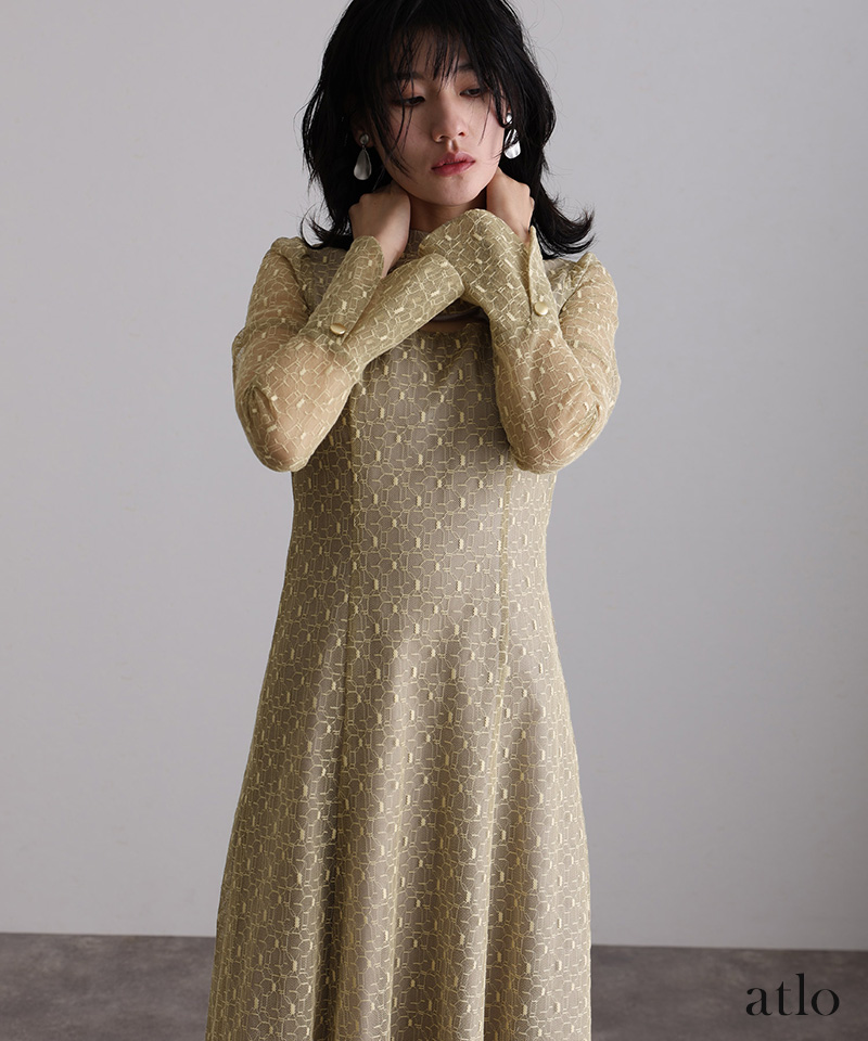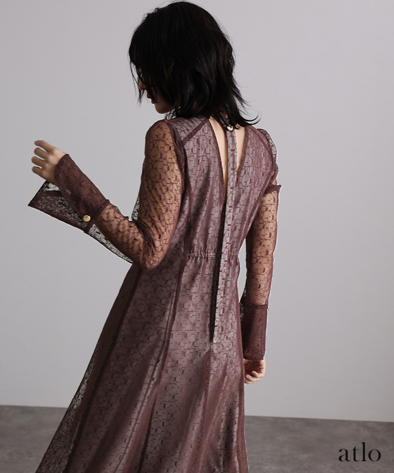 袖のゴールドのボタンがアクセントで、高級感あるワンピースです。