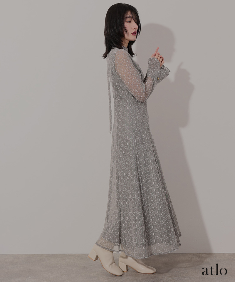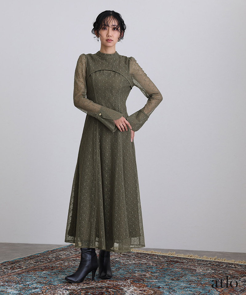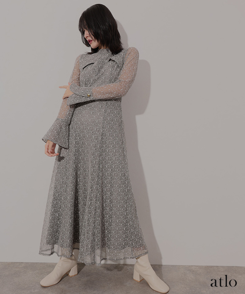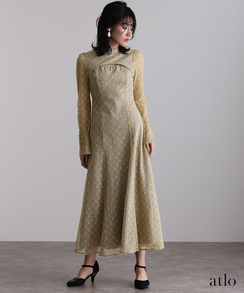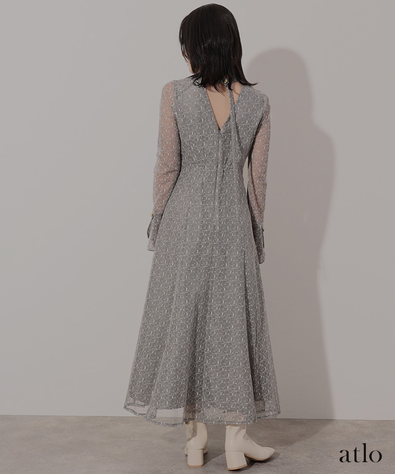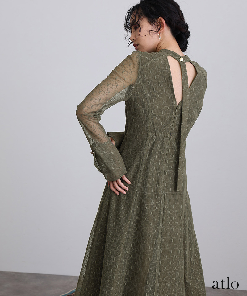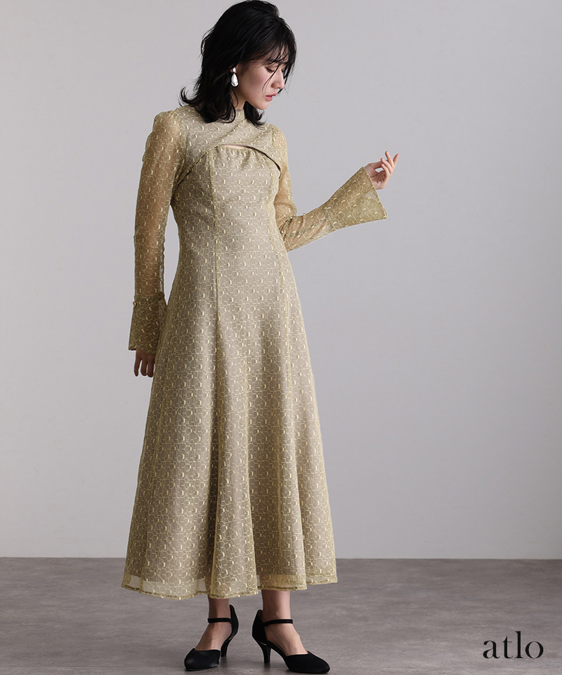 袖のゴールドのボタンがアクセントで、高級感あるワンピースです。