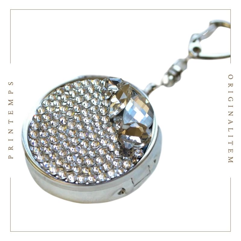 イニシャル入れ SWAROVSKI&ビジュー 携帯灰皿 キーホルダー ラウンド 持ち運び おしゃれ バッグチャーム 喫煙グッズ 灰皿 携帯用 アイコス