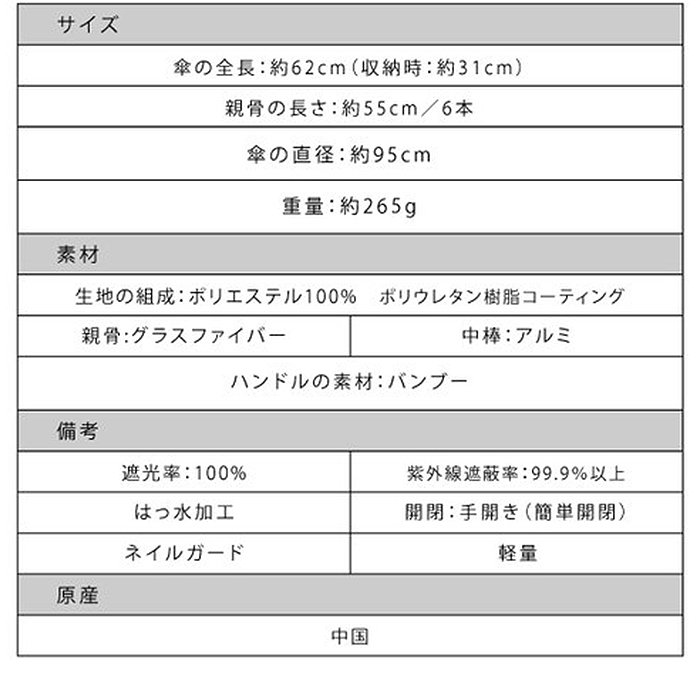 晴雨兼用なので雨の日も晴れの日もこれ1本で安心♪