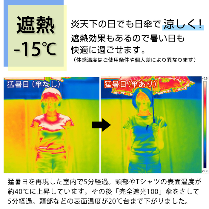遮光100%の生地を使用した折りたたみ傘。