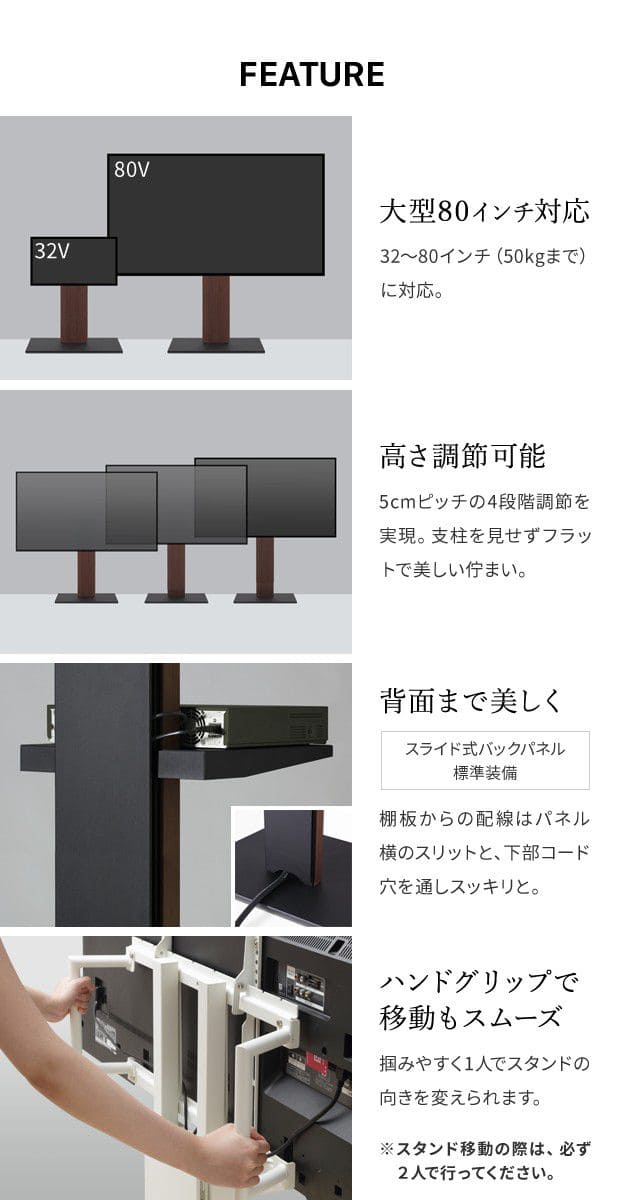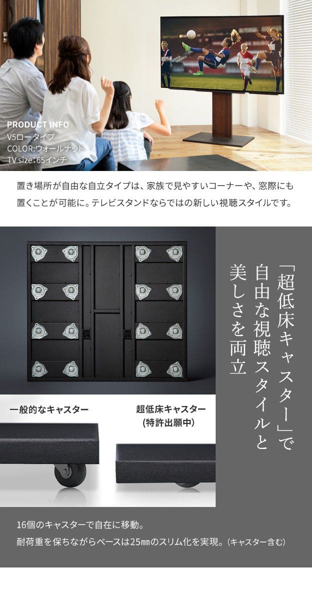 テレビスタンド 壁寄せ ロータイプ テレビ台 キャスター 自立型 収納 65インチ 75インチ 80インチ スリム 移動 配線 隠す 耐震 薄い 大型 本体 おしゃれ