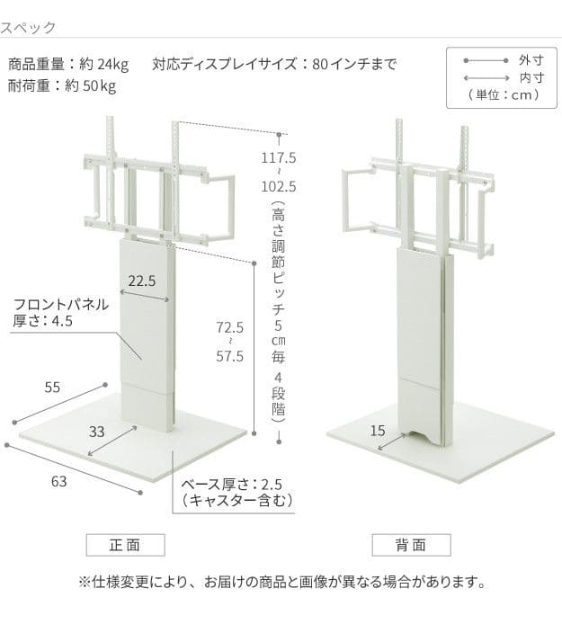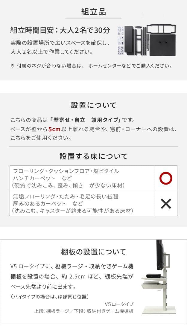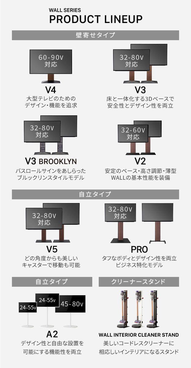 壁掛け風 置き型 自立式 縦 32型 43型 50型 55型 60型 65型 75型