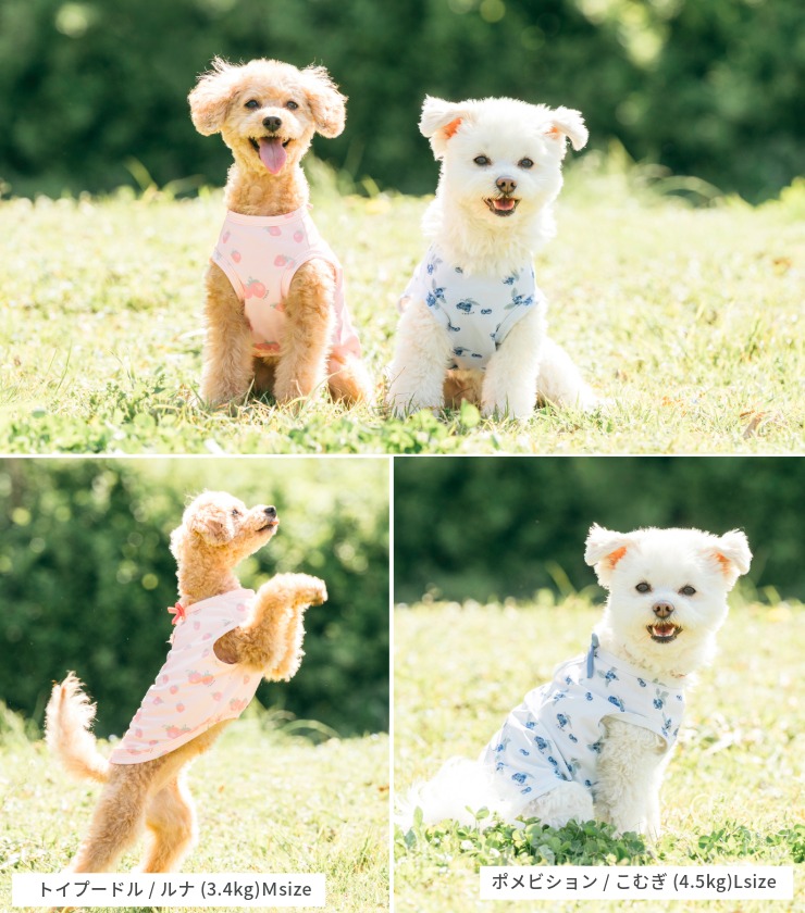またワンちゃんの体格(腕や足の長さや太さ、胸の張りなど)や毛量の影響で、お洋服によって着脱のしやすさや