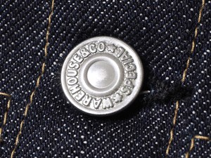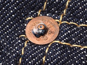 >>オリジナルボタンも新しくなり「鉄製銅メッキボタン」を使用。使い込むほどに経年の変化が存分に楽しめるデティールの1つ。