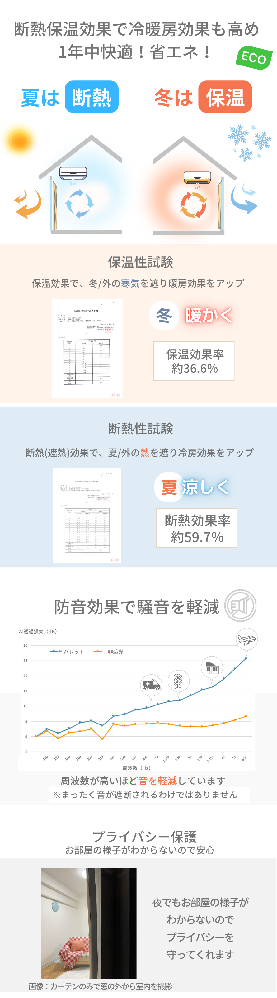 断熱・保温効果のある生地は、窓ガラスから伝わる暑さや寒さを軽減し冷暖房の効果を高めてくれます。