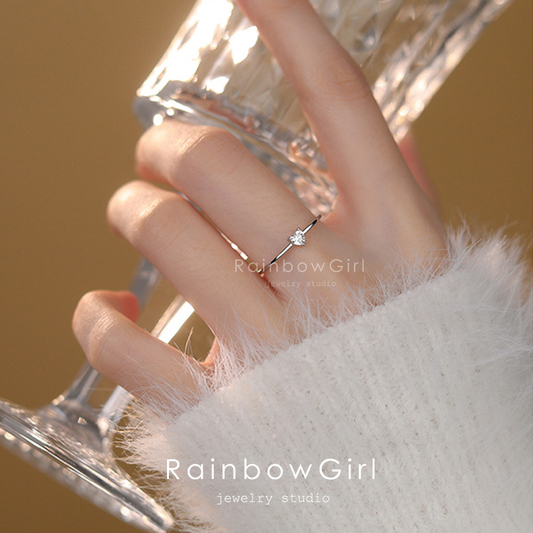 指輪 レディース 細いリング ハート 調整可能 一粒 ピンキーリング フリーサイズ 可愛い ダイヤモンドcz 重ね付け 女性 母の日 ギフト プレゼント