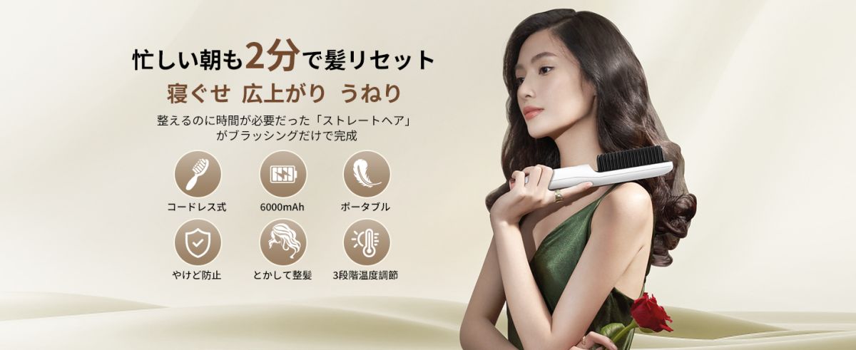 【忙しい朝も2分で髪リセット】本ストレートブラシが持っていれば、慌てないように、2分間でクイックスタイリング。整えるのに時間が必要だった「ストレートヘア」がブラッシングだけで完成できて、1台で好きなスタイリングへパサパサな髪とさよなら!髪を傷つけずエレガントで滑らかな髪を実現します!