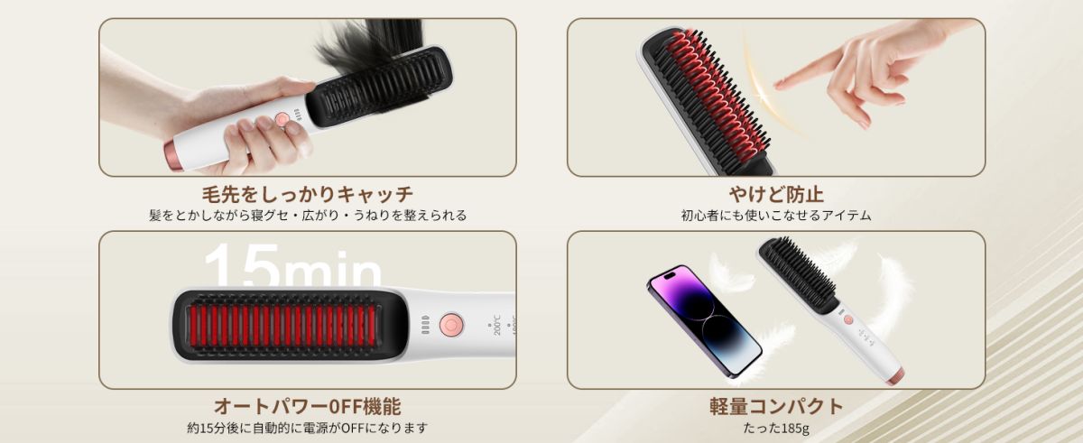 【誰でも簡単にできる】本ストレートブラシは梳かして撫でるだけので、初めて使用する人でも簡単にスタイリングできます。挟んで使うタイプよりこのストレートブラシの加熱箇所が肌に直接当たりにくい構造になっているため、やけどのリスクが低いのが特徴で、ヘアのスタイリングが日課の人にとても向いています。