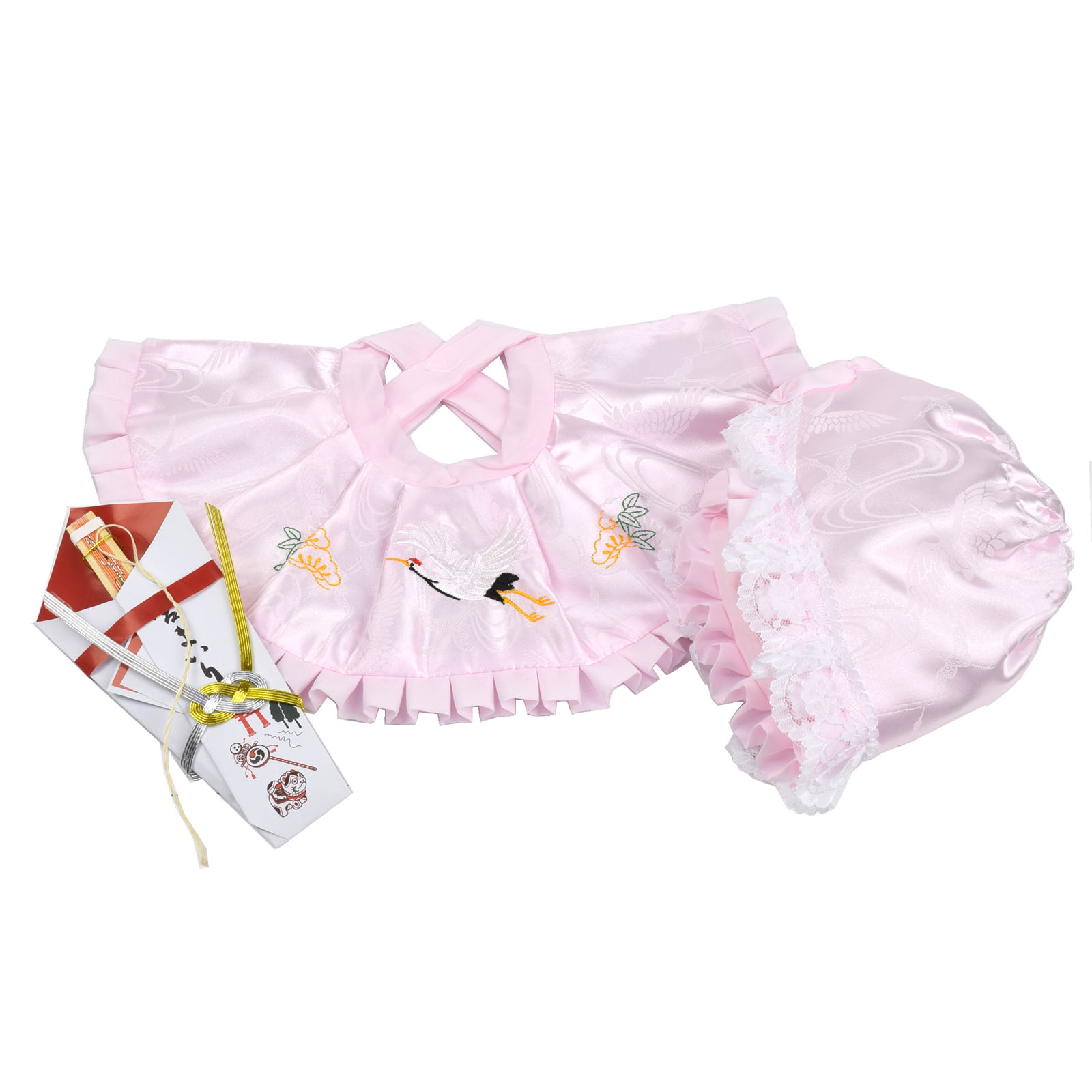お宮参り よだれかけ 帽子 4点セット フードセット 初着 産着 日本製 ピンク