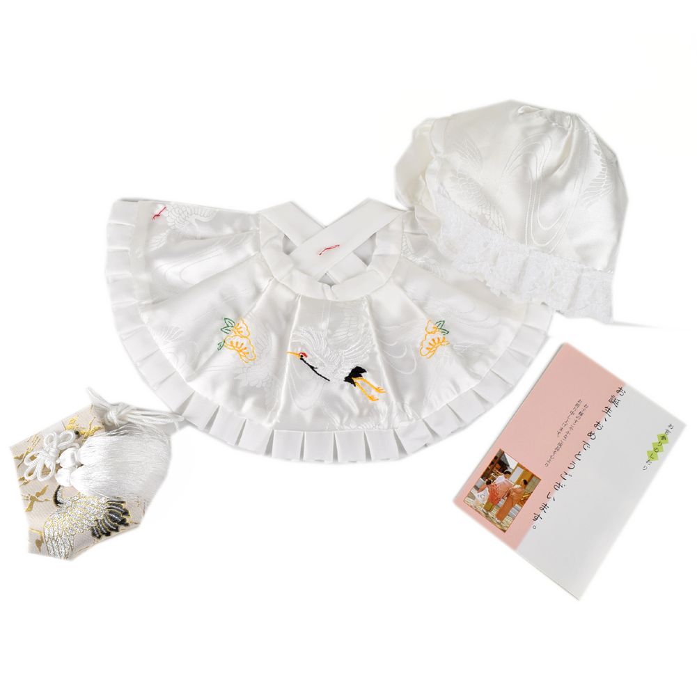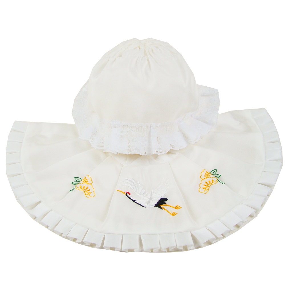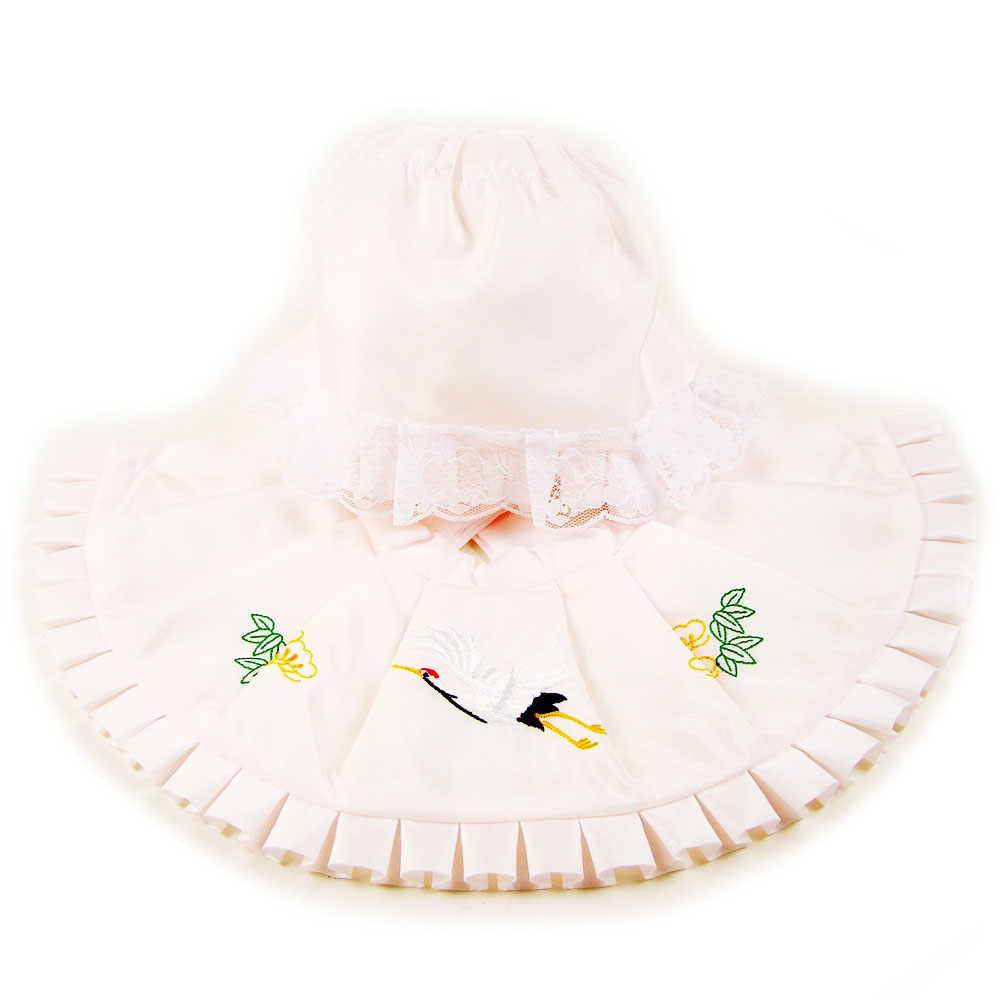お宮参り よだれかけ 帽子 2点セット フードセット 男女兼用 男の子 女の子 初着 産着 日本製 白