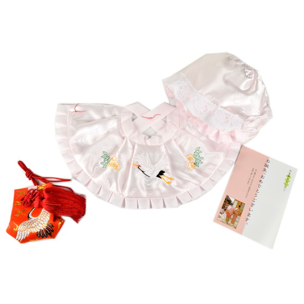 お宮参り よだれかけ 帽子 お守り 3点セット フードセット 初着 産着 日本製 ピンク