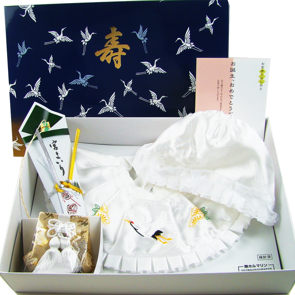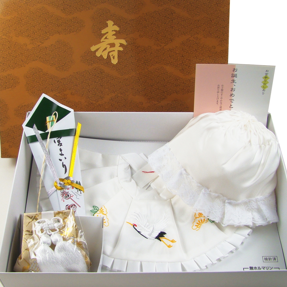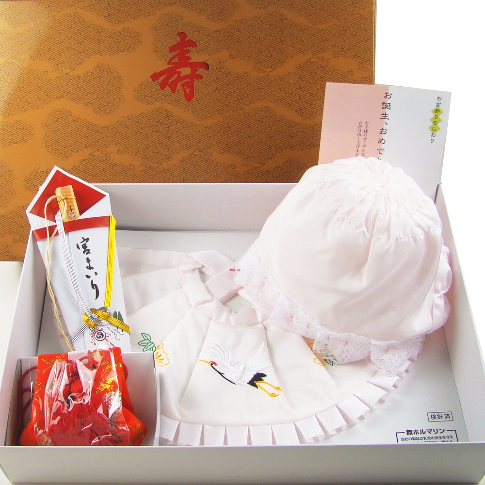 お宮参り よだれかけ 帽子 4点セット 箱なし フードセット 初着 産着 日本製 白