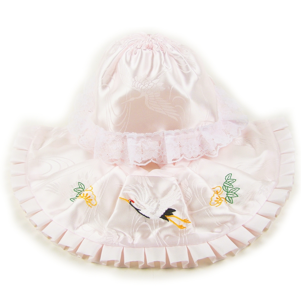 お宮参り よだれかけ 帽子 2点セット フードセット 初着 産着 日本製 ピンク