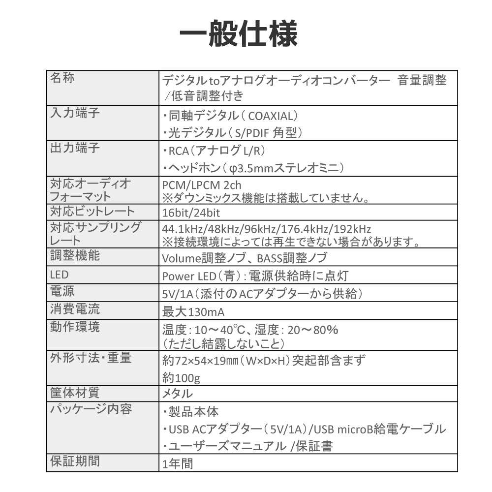 本製品は、デジタル音声をアナログ音声に変換するDAコンバーターです。