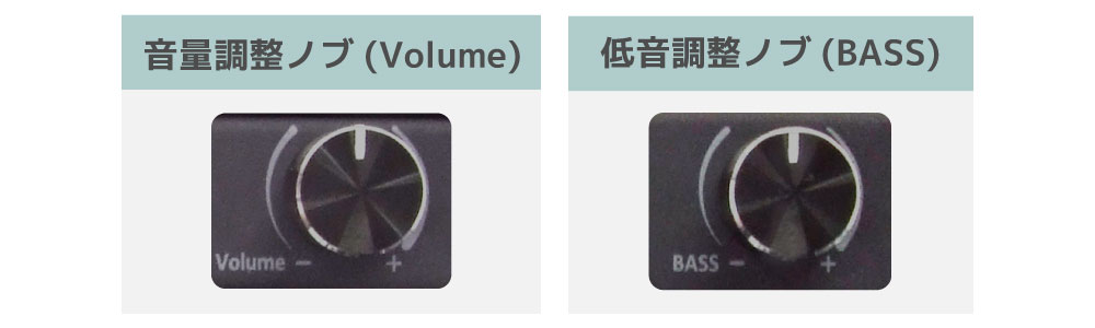 音量・低音調整ノブを搭載