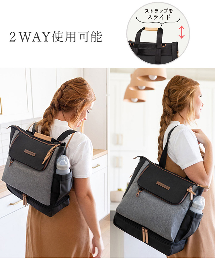 リュックとショルダーバッグの2WAY使用可能で、リュックとショルダーバッグのストラップを兼用したスマートなデザインが特徴的です。