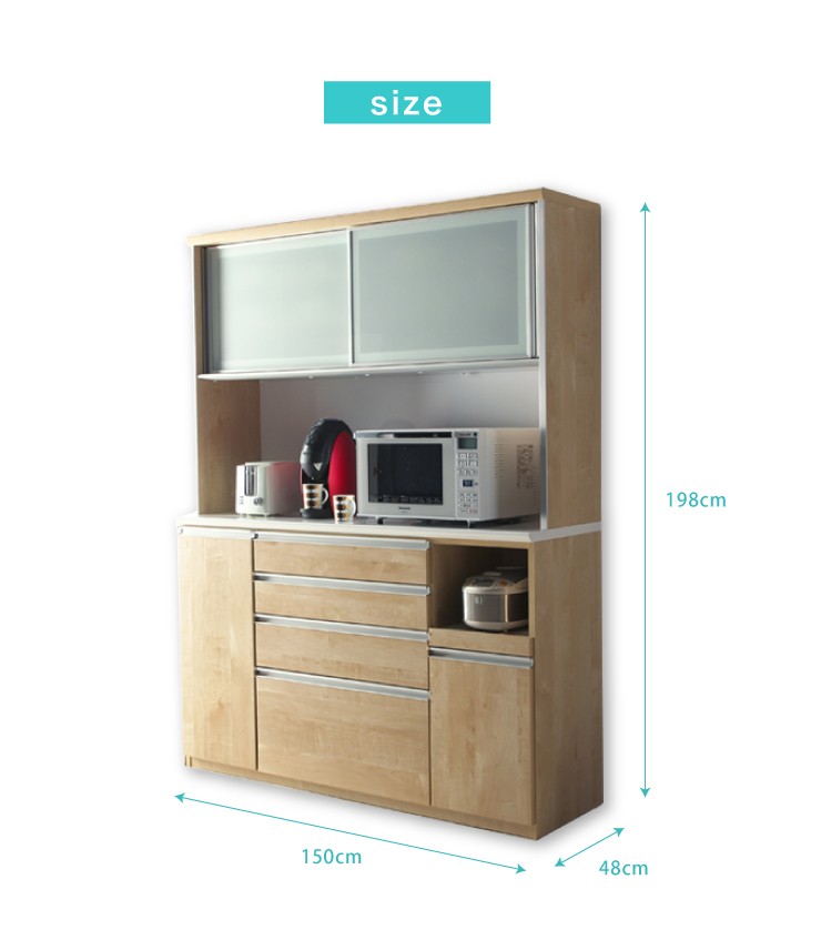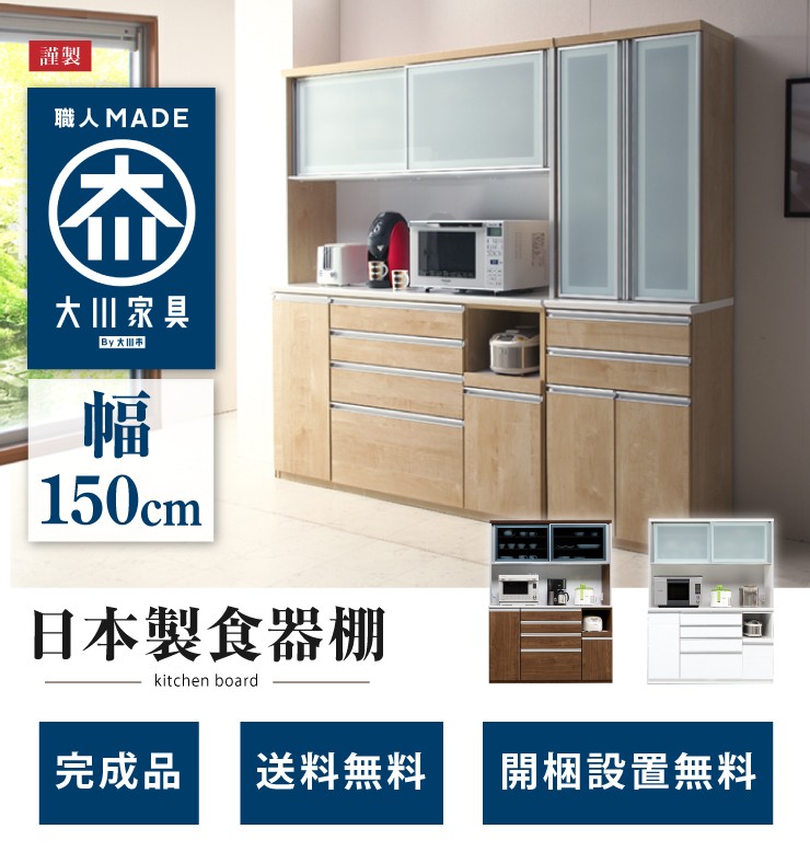 食器棚 幅150cm 高さ198cm 大川家具 国産 ほぼ完成品 開梱設置無料 キッチンボード 木製 収納 日本製 代引不可